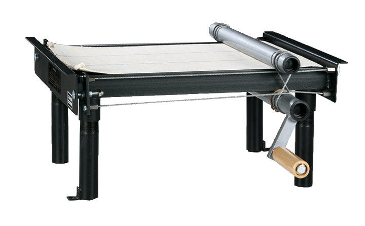 Portable, yet extremely sturdy, this slab roller is compact enough to fit on a table while rolling out slabs up to 14" W x 15" L. Maximum slab thickness is 3/4". The Mini SRC is ideal for taking to workshops or for studios with limited space. It is constructed of steel pipe and bent plate like the SRC so it will last for many years. The patented cable drive system with opposing rollers produces even pressure along the bed. It includes one 1/4" shim with canvas and two 1/8" plain shims. Assembled dimensions: 31"W x 26"L x 14"H.