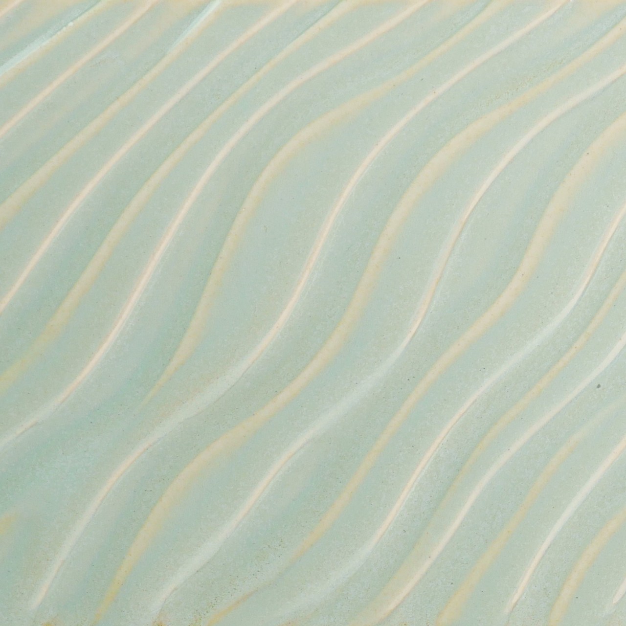 A glossy pale green glaze like the melon it’s named for. Breaks across textured surfaces and develops a peachy float when thick.