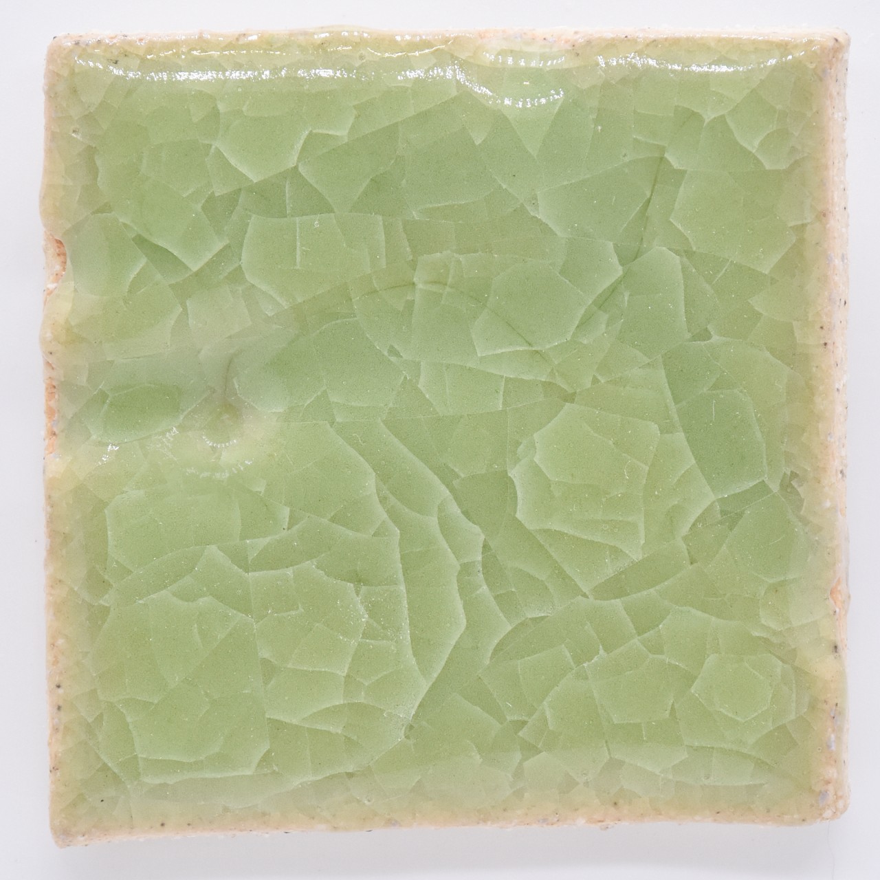 Green with crackle effect high-fire glaze. After firing, it has a big-piece crackle texture. The more the coats you apply, the larger the crackle piece will be.