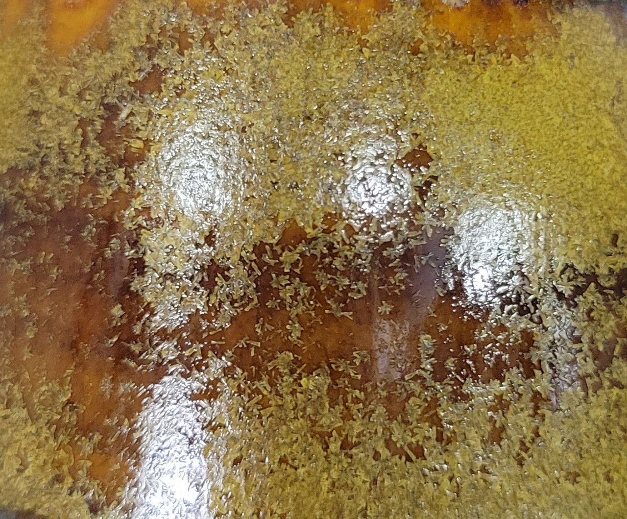 A type of Gold-like color glaze - It can create mini crystal when it holds at high fire range. Effects will vary depending on different firing temperature.