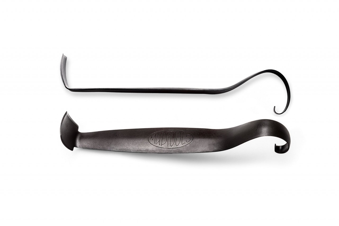 Japanese inspired & reimagined, as the name implies, MUDTOOLS thinks this trim tool does it all. No more switching between dozens of trimming tools! Since his first visit to Japan in the 80’s, MUDTOOLS' Michael fell in love with the simplicity of the Japanese style kanna trim tool. Subsequently, he spent years after altering and remaking his own trimming tools to better suit suit his various needs. These efforts have all combined into the elegant versatile pottery tool you see here. The sharpened more familiar kana spade shape provides an excellent precise cutting edge, especial for working the details around the foot of tea bowls, bowls and plates. The curl, provides a combination of all Michael's favorite loop tool shapes: both a broad surface for smoothing and a tight shape for detail trimming. We hope you enjoy discovering all the possibilities this tool provides.