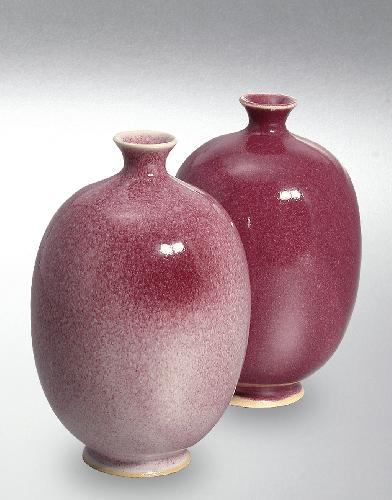 Satin-gloss, wine-red glaze with fine, light effects. The higher the firing temperature, the more enhanced the effect.